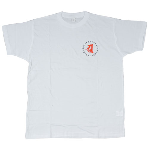 「お遍路Tシャツ 半袖 光明真言マーク入り M」は、綿100%のTシャツです。胸に赤の弥勒菩薩を意味する梵字の回りに円状に光明真言が梵字で黒で印刷されています。