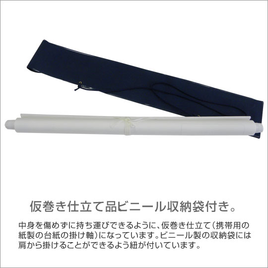 ●軸仮巻き品 ●本紙部素材は絵絹 ●絵柄部:シルクスクリーン ●専用ビニール袋付き ●購入月より3年間有効の表装5000円割引き付き |
