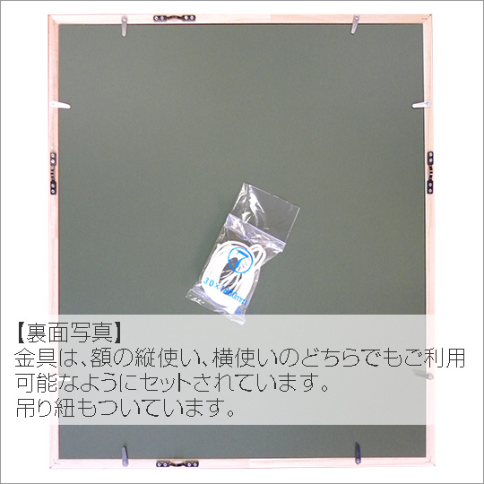 ●素材 ・額縁:木製(タメ塗り仕上げ) ・マット部:布(ベージュ色) ・ガラス部:アクリル(UVカット仕様) ●付属品:吊り紐 ●約45.5cm×約38.0cmの8号色紙を収納するための額です。写真は横向けの色紙ですが、縦向けの色紙にも対応しています。 |